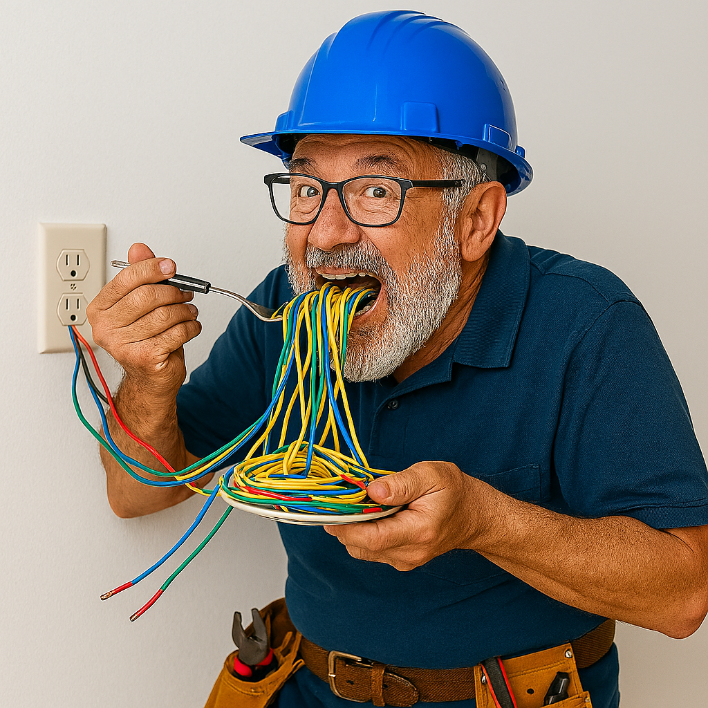 Az első munkánk egy egyszerű lámpacsere volt. Karcsi magabiztosan felmászott a létrára, megfogta a régi lámpát, és... lecsavarta vele a plafont. A lakók azóta csillagokat látnak – nappal is.